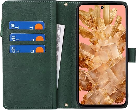 Pelanty for Pixel 8 縄掛けケース手帳型 携帯カバー 肩掛け斜めがけ ショルダー 合成皮革+TPU マグネット Google pixel8 財布型カバー ICカード お札入れ小銭入れ大容量 収納ポケット スタンド機能 グーグル ピクセル8 6.2インチ ストラップ付き 落下防止 耐衝撃 全面保護(肩縄付き-グリーン)
