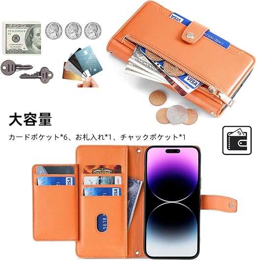Google Pixel 8A ケース Google Pixel 8A カバー【COKOVI】グーグル ピクセル 8A ケース 手帳型 カードホルダー付き 財布型 サイドマグネット 首掛け 肩掛け ショルダーストラップ おしゃれ チャックポケット付き 御洒落 女性 可愛い スタンド機能 高級PUレザー 耐衝撃 (オレンジ, Google Pixel 8A)