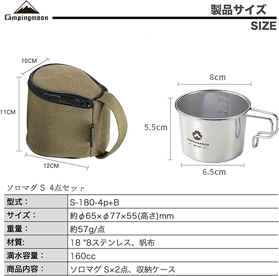キャンピングムーン(CAMPING MOON) キャンプ コーヒーソロマグ S マグカップ 160ml 4点セット 帆布ケース付き SOLO MUG S-180-4P+B