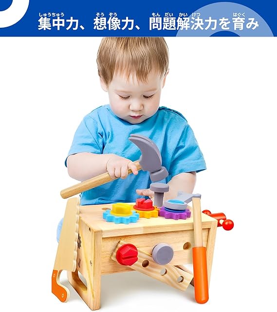 【本物そっくりな工具】ねじる、まわす、たたく、ひきぬくなどの動きが指先のトレーニングになり、脳を刺激します。