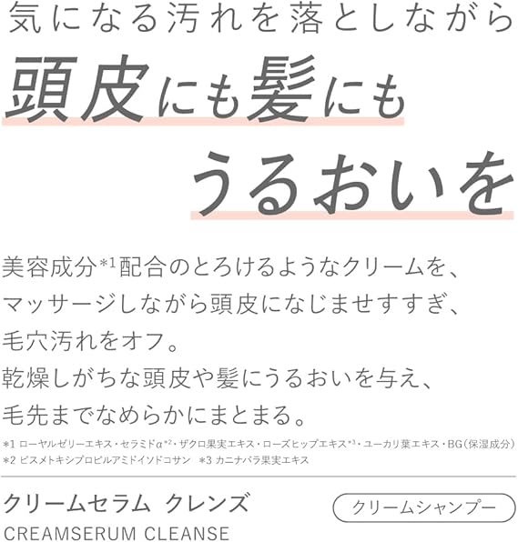 1本4役のクリームシャンプー。汚れを落としながら頭皮も髪もうるおい満たす。泡立たないタイプ。