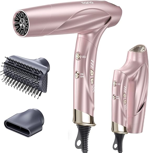 llano カーリングドライヤー 大風量 サロン級 爆風 ブローブラシ付き ストレート ボリュームアップ 速乾 ヘアドライヤー 中和イオン&温冷循環送風 コンパクト 高速 ドライヤー 折り畳み式 家庭用 旅行用 1400W PSE認証済み TR57658(Pink)