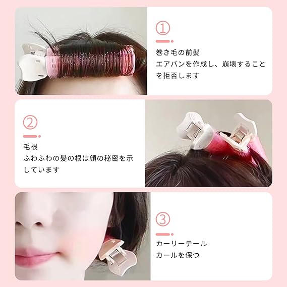 【丈夫で丈夫】:前髪カーラーが髪に効果的にくっつき、クリップが髪をしっかりホールドし、抜けにくく、金属素材の熱伝導率が良く、カーリング効果が良く、弾力性のあるバネ、クリップは開閉が簡単で、前髪を簡単かつ素早くカールさせます