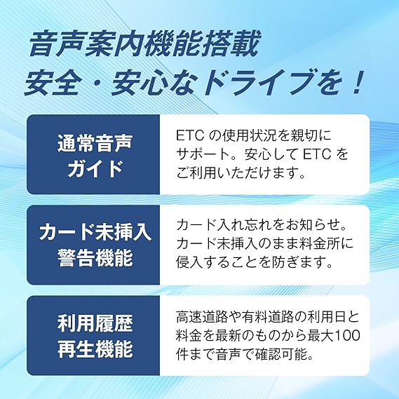 音声案内が聞き取りやすい、シンプルなETC車載器