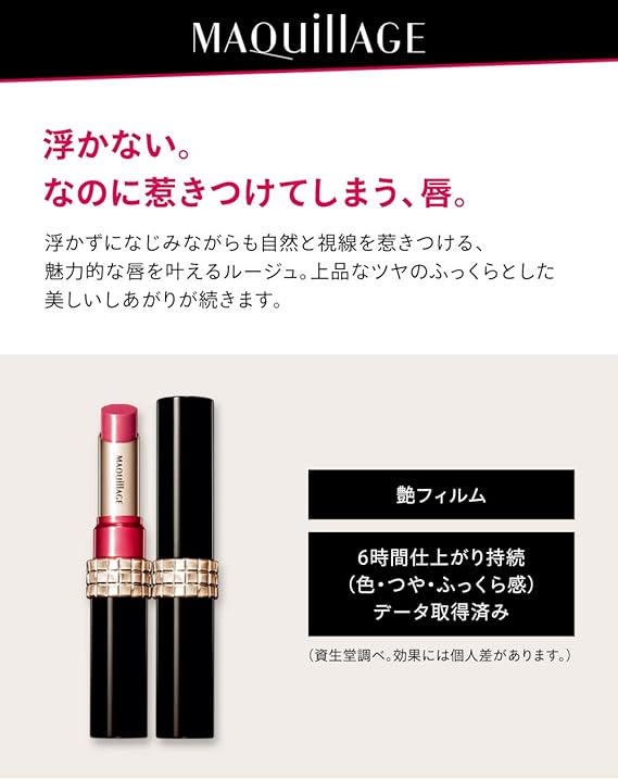 【仕上がり長続き】美しい仕上がりがつづきます。6時間 仕上がり持続(色・つや・ふっくら感)データ取得済み(資生堂調べ。効果