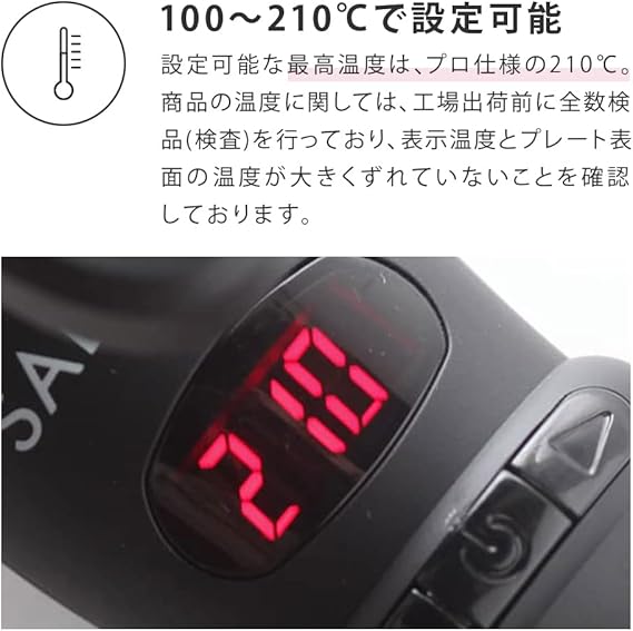 【MAX210℃】100℃~210℃の範囲で、5℃ずつ温度調整が可能です。