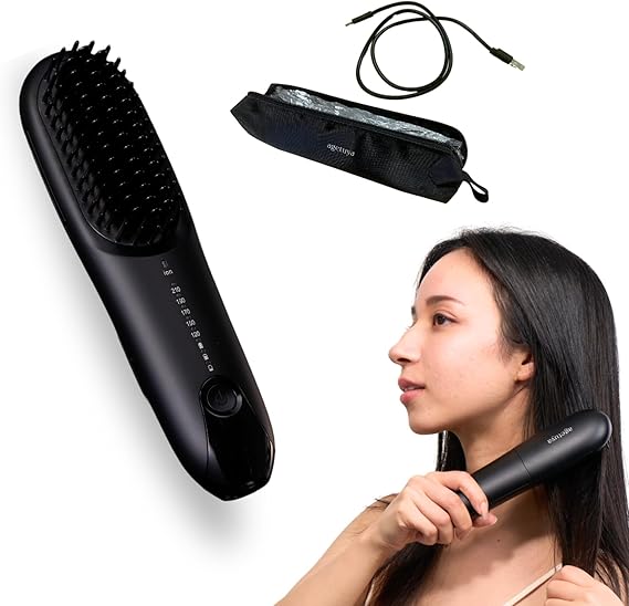 [2024年登場、QVC放送にて完売続出][延長保証3年][出先で使えるコードレスタイプ] AGETUYA コードレスミニブラシアイロンプラス ブラック [耐熱ポーチ付き] | ブラシアイロン アイロンブラシ ヒートブラシ