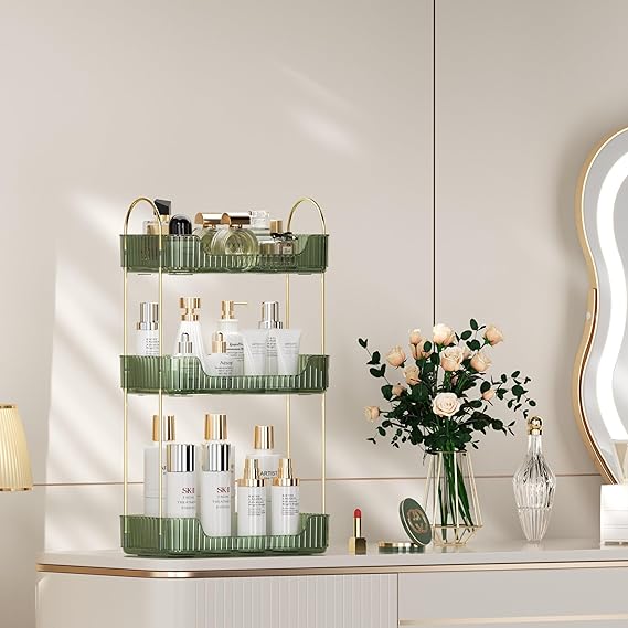 3段式バスルーム/化粧品/メイクアップ/ヘアドライヤー収納ラック、グリーン (透明な緑, 3層)
