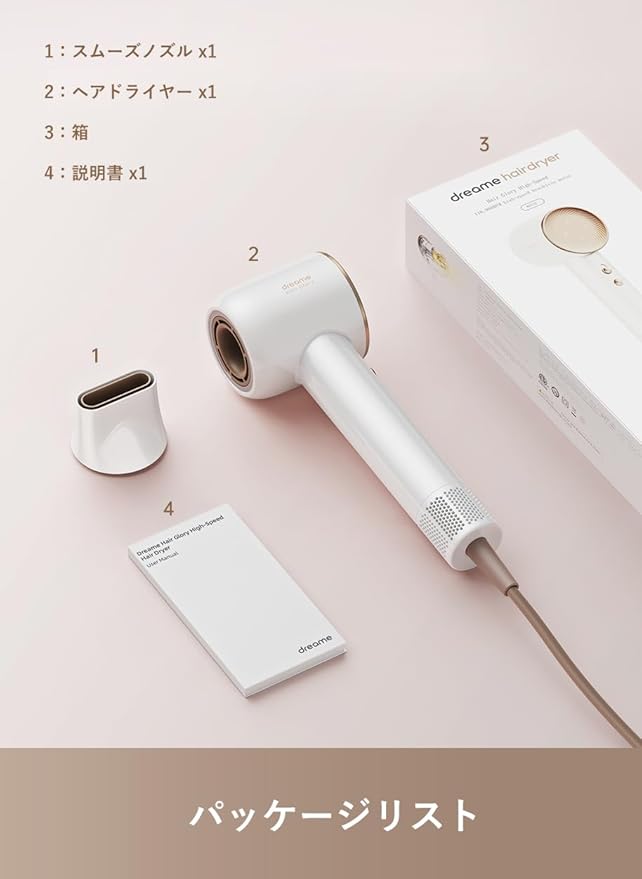 Dreame (ドリーミー) ドライヤー 3億個/?のマイナスイオン 毎分11万回転の高速モーター 最大風速70m/s 速乾 345g超軽量 低騒音運転 4段階調整 NTC温度制御 57℃恒温 過熱防止 LED表示 ヘアサロン/家庭用 旅行用 1年メーカー保証