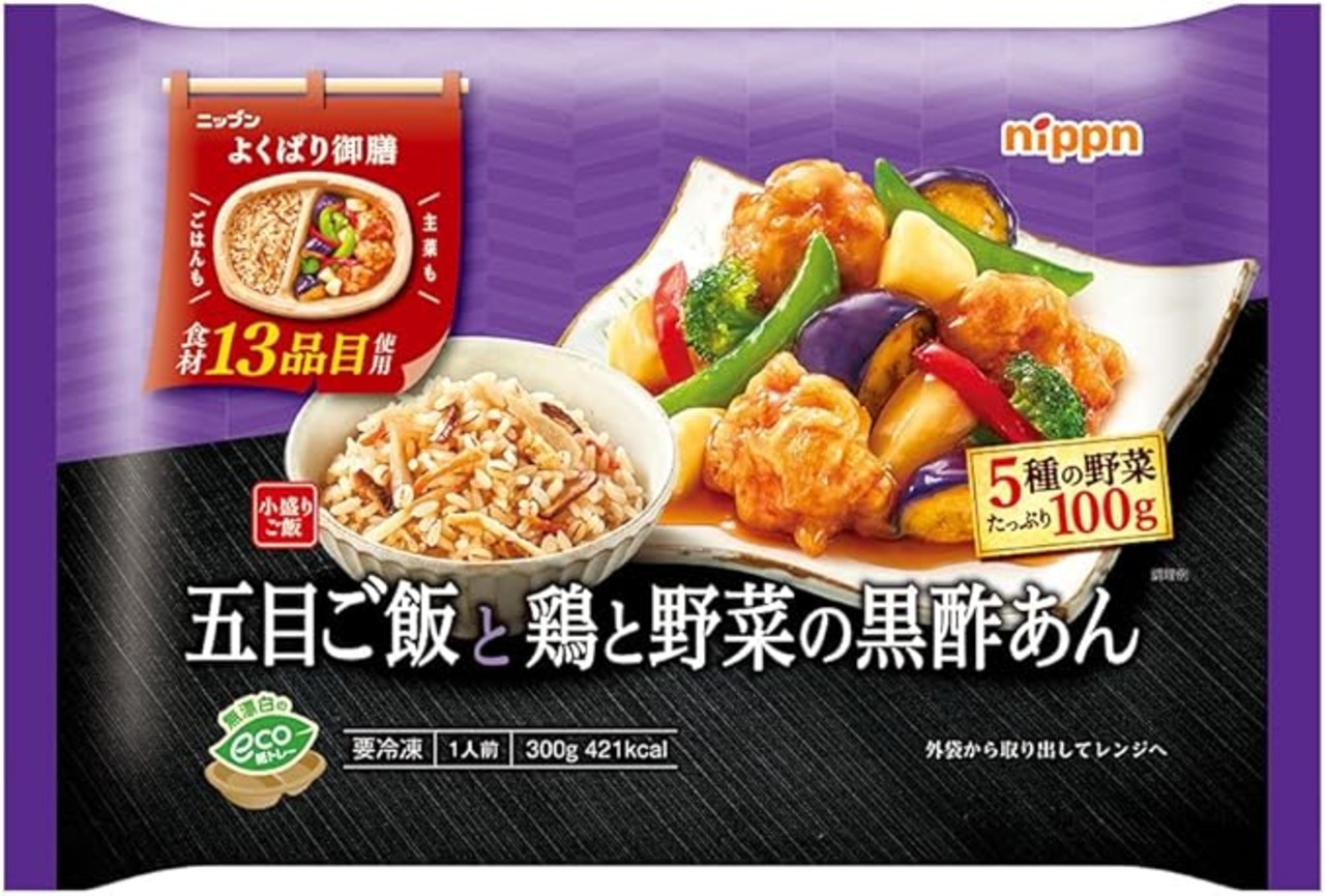 [冷凍] ニップン よくばり御膳 五目ご飯と鶏と野菜の黒酢あん 300gX3個