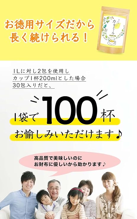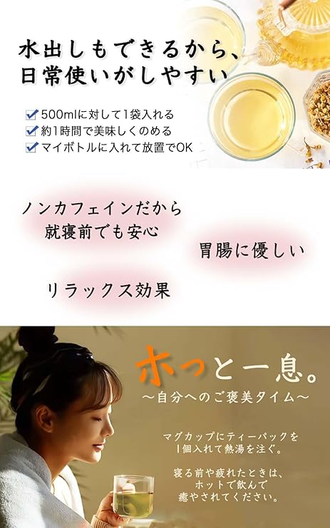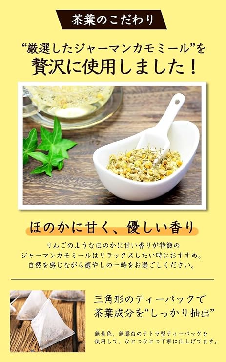 【20種類以上の栄養成分】カモミールとレモングラスを絶妙なバランスでブレンドしたことで、上品な味わいに仕上がっています。健康維持の強い味方としても愛飲されています。