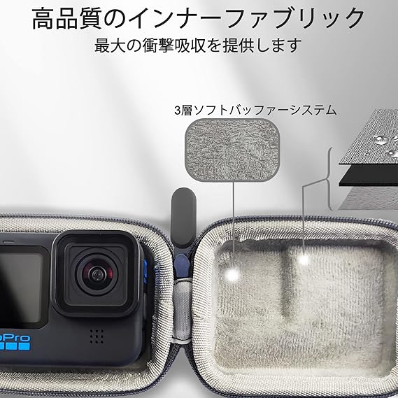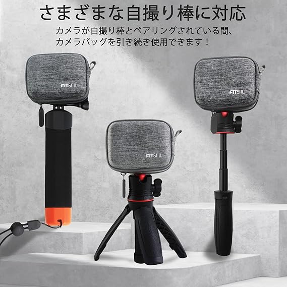 FitStill グレーのミニタープ織りカメラバッグ Go Pro Hero 13/12/11/10/9/8/7 /(2018)/ 6/5 Black の場合、 ハードシェルトラベルオーガナイザー DJI Osmo Action 2、AKASO、Campark、YIActionCameraなどに適しています