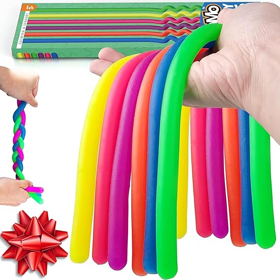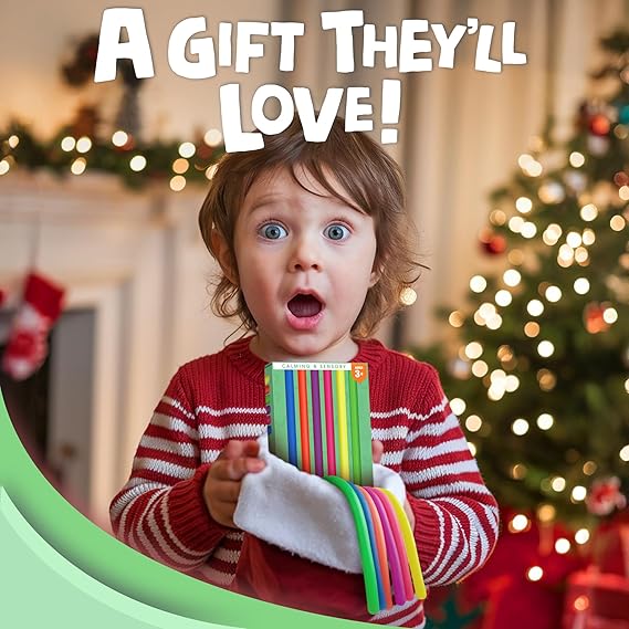 完璧な子供用靴下の詰め物 - 当社の伸縮性のあるひもでクリスマスをさらに楽しくしましょう! このカラフルで丈夫な感覚玩具は、3歳以上の子供全員に人気で、ストッキングにぴったりフィットし、クリスマスの朝に子供たちが喜ぶでしょう。