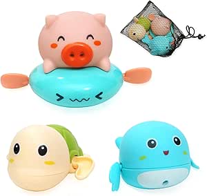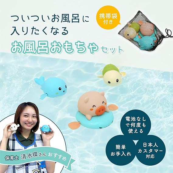 【専門家お勧め 収納ネット付き】Teresa お風呂 おもちゃ 玩具 赤ちゃん 男の子 女の子 動物 プレゼント ブタ クジラ カメ 電池なし 3点セット