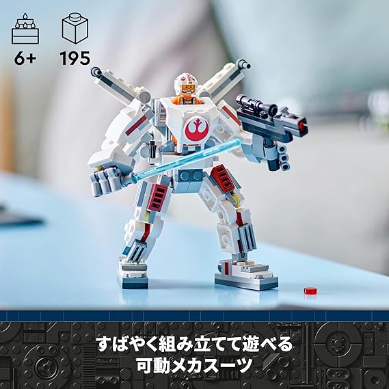 Xウイング メカスーツ – ミニフィギュアが入るコックピットや大型のライトセーバーとスタッドブラスターを備え、指・腕・脚が動く可動フィギュアです