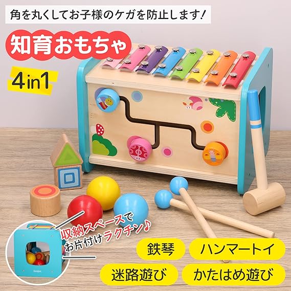 鉄琴:楽しさと学びを兼ね備えた木製鉄琴は、でリズム感を養います(音階が正しくない場合がございます。)。かたはめ機能は手指の巧緻性向上に寄与し、国内での安全検査をクリア。知育玩具として男女問わず喜ばれ、誕生日や入園祝いに最適な贈り物です。