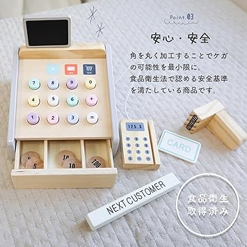 [Rocotto] 木製 レジスター セット おもちゃ 玩具 おままごと お店屋さん ごっこ遊び 食品衛生取得済 レジ 木のおもちゃ 知育玩具 子供 幼児 (01.ラッピングなし)