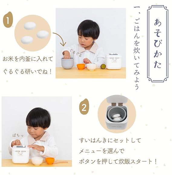 【内容物】すいはんきx1、内釜x1、おはしx1、茶碗x1、しゃもじx1、ごはんx3、汁椀x1、汁椀プレートx1、ふりかけ(紙製)x1