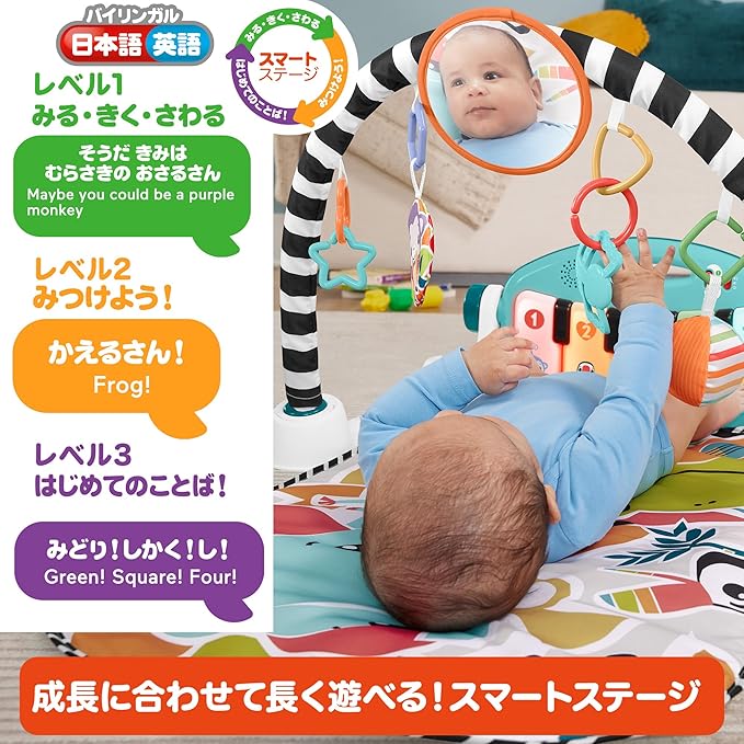フィッシャープライス(fisher price) あんよでキック! 感覚が育つ4WAYバイリンガル・ピアノジム -2024年モデル- 赤ちゃん・幼児おもちゃ 室内遊具 ベビージム ・ プレイマット ・ 英語 ・ 外国語 0ヵ月から マルチ HYJ721