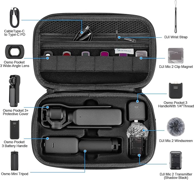 Skyreat Osmo Pocket 3ケース、ポータブル PU ストレージ保護バッグ DJI Osmo Pocket 3 Creator コンボアクセサリー用