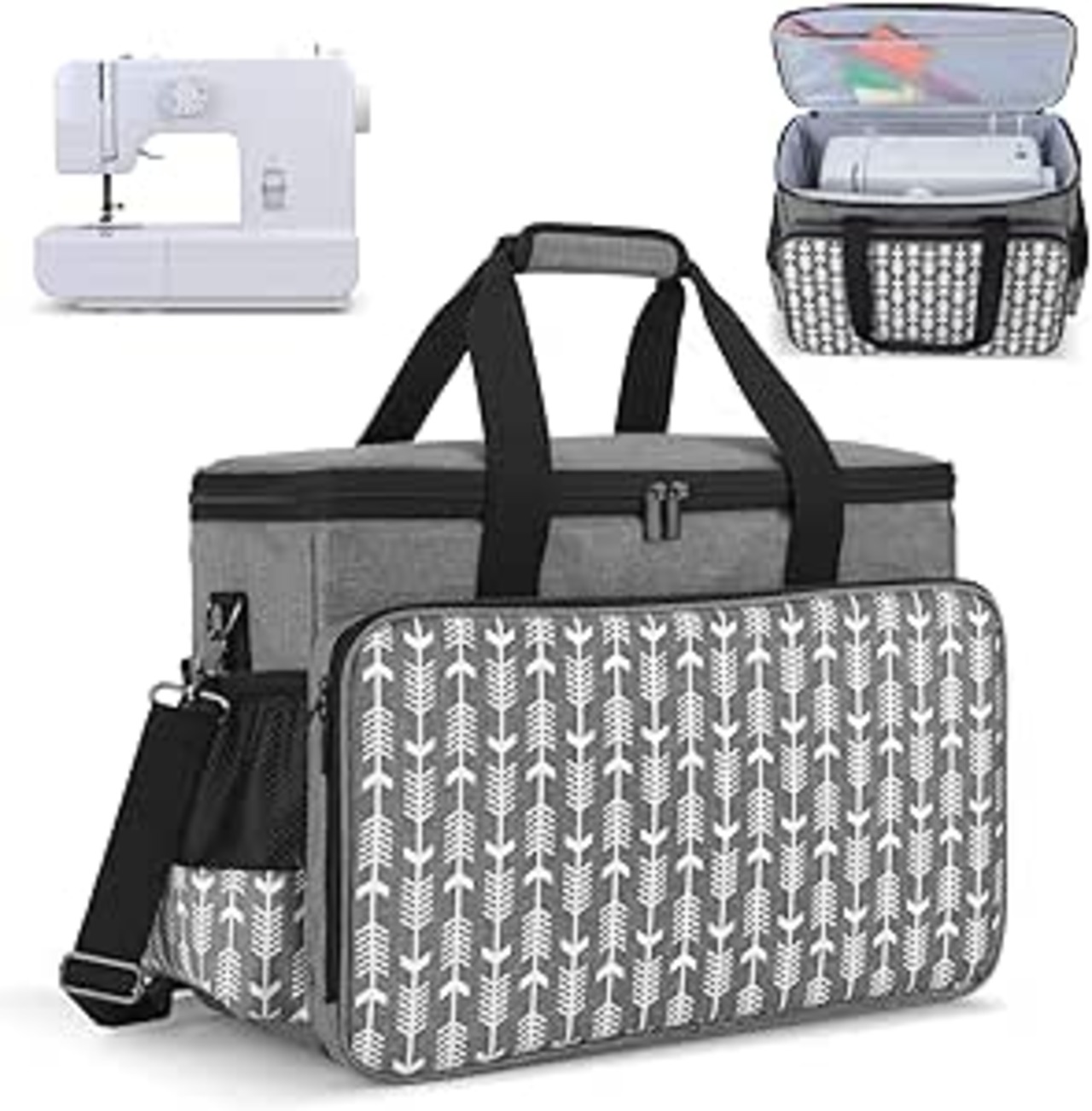 Yarwoミシンキャリングケース ミシン収納バッグ 硬い底板付き(矢印付きグレー)