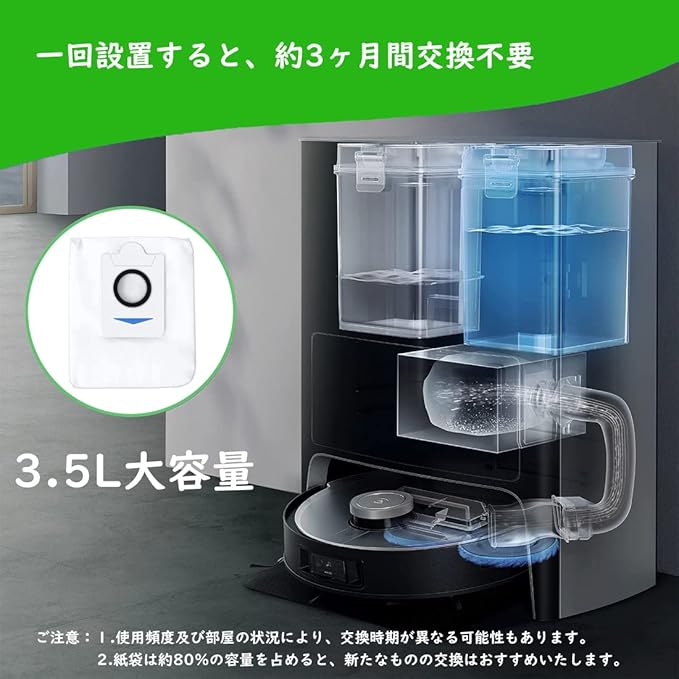 大容量-えこばっくす 紙袋は3.5Lの超大容量があるので、一回設置すると、約2~3ヶ月ぐらい交換不要です。
