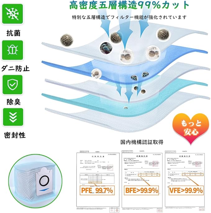 破れにくい-最新型5層のフィルター構造を採用するため、破れにくく漏らすこともほとんどありませ