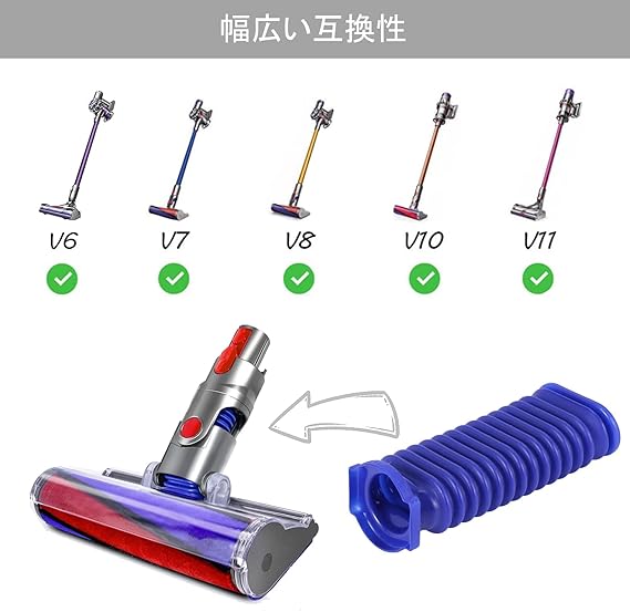 【ダイソン掃除機青いホース ワイド互換性】:ソフトベルベットロールサクションヘッドホースは、Dyson V6 V7 V8 V10V11掃除機と完全に互換性があります。(ダイソン非純正部品)★注意:ダイソン掃除機 V8slim/v10slimには対応していません。