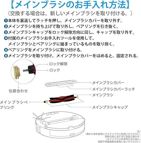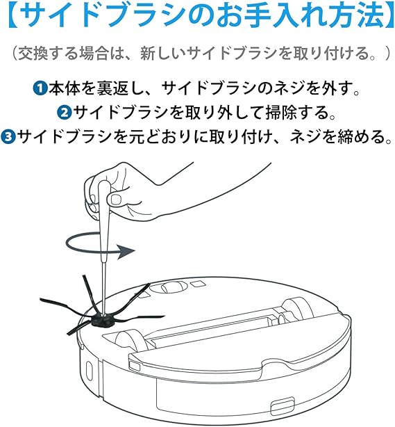 【ブラシ】サイドブラシは部屋の隅や壁際にあるゴミもしっかりとかき出し、吸込口中央へと導く。メインブラシはペットの毛やアレルゲンなど汚れをより多く掃除し、ゴミのたまりやすい部屋の隅や角まで入り込んで徹底的に清掃し、ロボット掃除機の最高のパフォーマンスを引き出す。