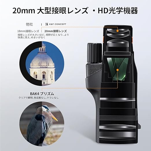 K&F Concept 単眼鏡 望遠鏡 12 × 50高倍率 Bak4搭載 広角スマホ望遠レンズ 高透過率 耐衝撃 軽量 小型 2WAY観察モード 三脚 スマホアダプター付き スマートフォン対応 野鳥観察 スポーツ観戦 運動会 アウトドア ブラック