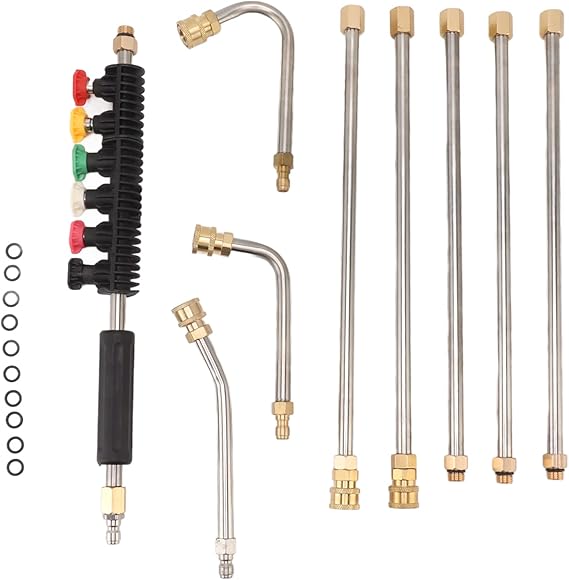 圧力洗浄機延長ワンド、ノズル 6 個、直線ロッド 5 個、曲線ロッド 3 個、およびワッシャー 10 個、5 角度調整可能なパワーワッシャーランス付き