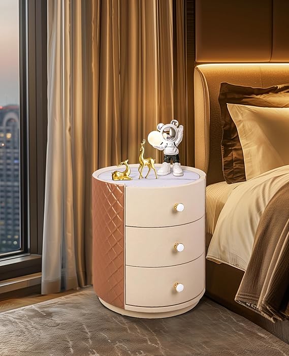 【セラミック天板×合皮の異素材ミックス、おしゃれなナイトテーブル】大理石調のセラミック天板とpvcレザーで仕上げたナイトテーブルで、エレガントで高級感があり、お部屋に一つ置いておくだけで、インテリアとしておしゃれ感を演出できます。また、柔らかく快適な肌触りなどの魅力があり、撥水性が高く汚れが付きにくいためお手入れが簡単です