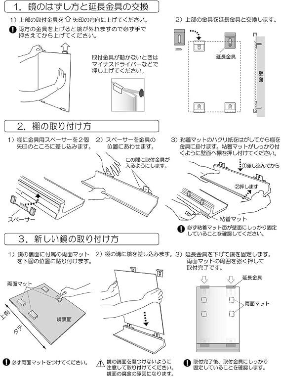 ※5mm厚の鏡で鏡止め金具が交換可能なタイプであれば東プレ製以外のメーカーの鏡にも取り付け可能です。