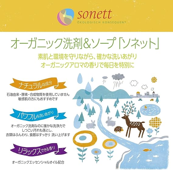 sonett ソネット 洗濯用洗剤 ウォッシュリキッド センシティブ 液体洗剤 無香料 本体 2L 肌にやさしい 敏感肌 オーガニック 自然由来 SNN5615