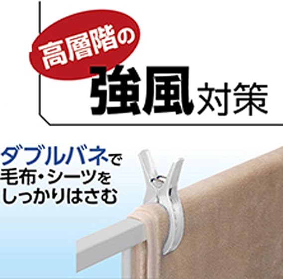 がっちりはさめる強力ダブルバネで高層階の急な強風対策 大きく開いてぴったりフィット 最大幅約80mm