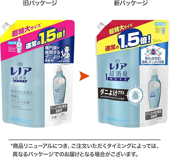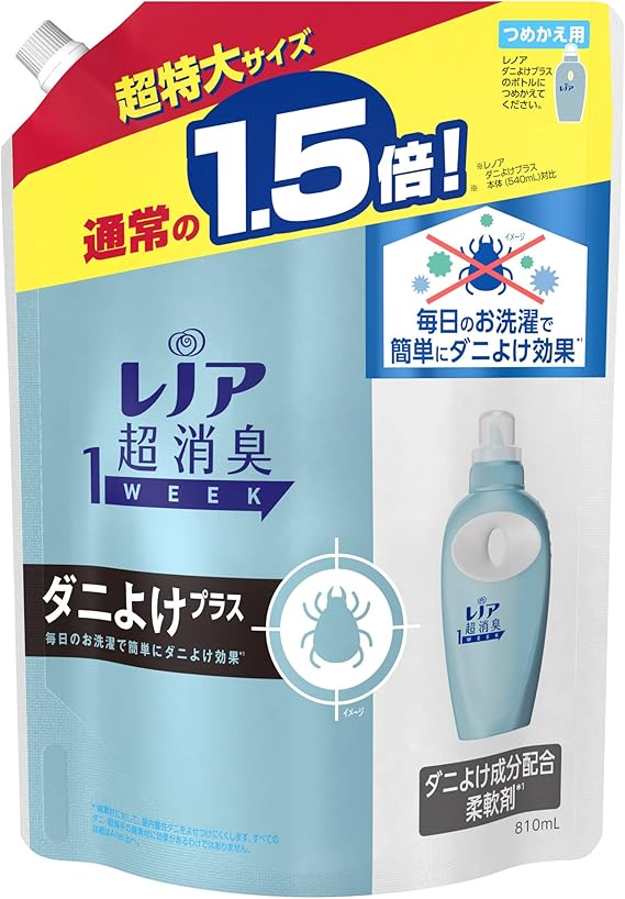 [大容量] レノア 液体 超消臭1WEEK 柔軟剤 フレッシュグリーン ダニよけプラス 詰め替え 810mL1