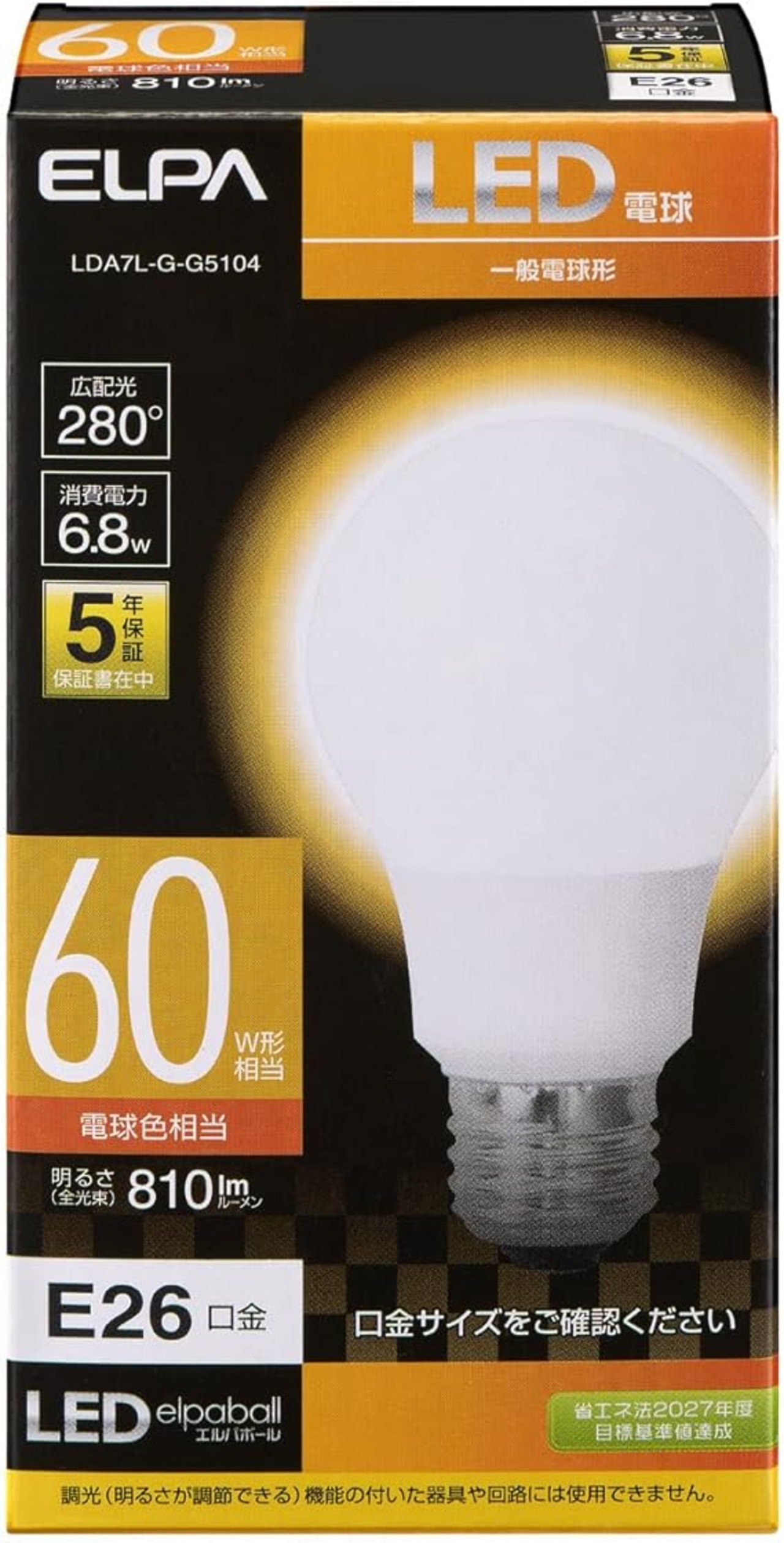エルパ(ELPA) LED電球A形広配光 E26 電球色相当 屋内用 LDA7L-G-G5104