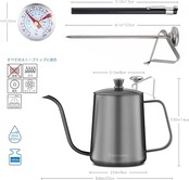 優れたデザイン:人間工学に基づいた耳の形のハンドルは、沸騰したお湯を注いで火傷をしないように快適で安全なグリップを実現するように設計されています。コンパクトなサイズで掃除が簡単です。ケトル蓋一体型温度計により、最適な温度でコーヒーを淹れることができます。