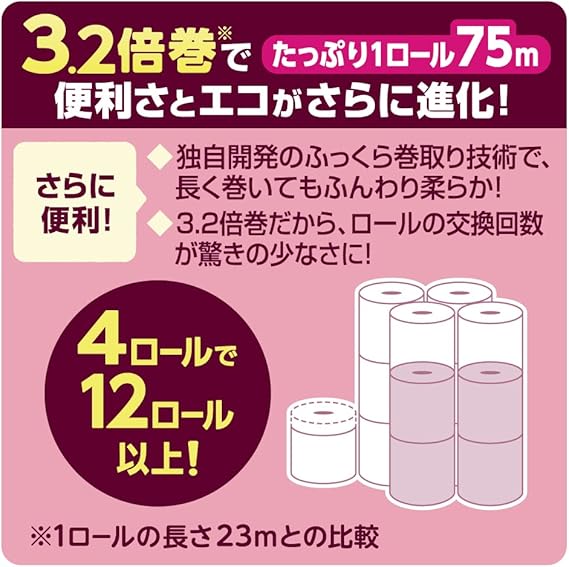 エリエール トイレットペーパー i:na(イーナ) フラワープリント 3.2倍巻き 75m×64ロール(4ロール×16パック) ダブル パルプ100% 華やかなフローラルの香り【ケース販売】1