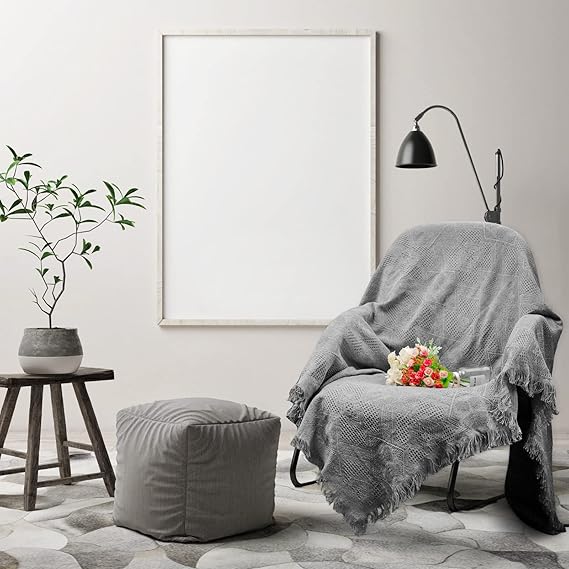 DEWEL マルチカバー おしゃれ ソファカバー 1−2人掛け 長方形 130*180cm ブランケット フリンジ付き 多機能 テーブルクロス ベッドカバー 綿+ポリエステル 滑り止め 無地 水洗い 四季通用 グレー