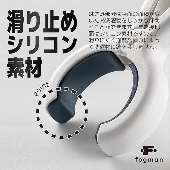 【滑り止めシリコン素材】はさみ部分は平面の面積が広いため洗濯物をしっかり抑えることができます。また接地面はシリコン素材ですので、滑りにくく適度な弾力によって洗濯物に跡を残しません。
