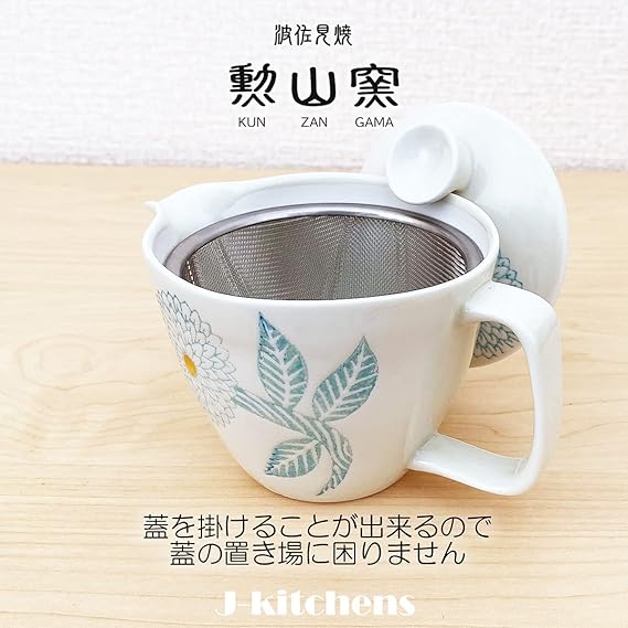 おしゃれな器で有名な波佐見焼の急須です。本体底面すれすれまで深さがあるステンレス製の茶こし付きなので少量でも美味しいお茶を楽しめます。又、片手でも注ぎやすいように蓋のつまみの位置を工夫しました。蓋の置き場に困らないように渕に掛けることが出来るように工夫してみました。