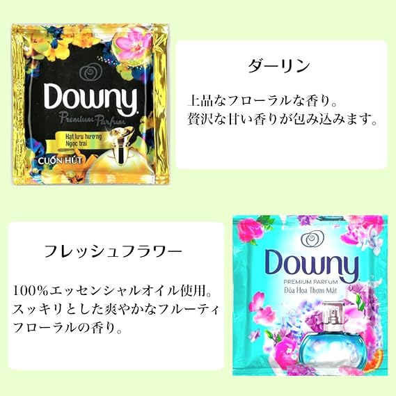 香りの良さで人気のアジアンダウニー。人気の香りや最新作を含め 9種類のお試しセット(9種類各3袋 計27袋入り)