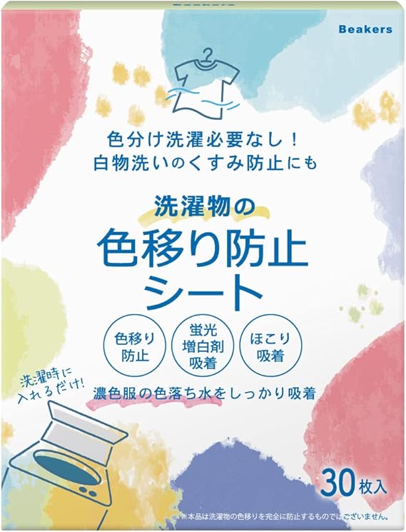 洗濯物 色移り防止シート 30枚 (大判 28×11cm くすみ防止 無香料 洗濯機 手洗い 対応 まとめ洗い 花粉)【 ビーカーズ 】