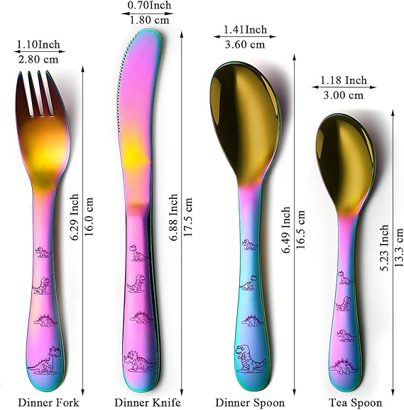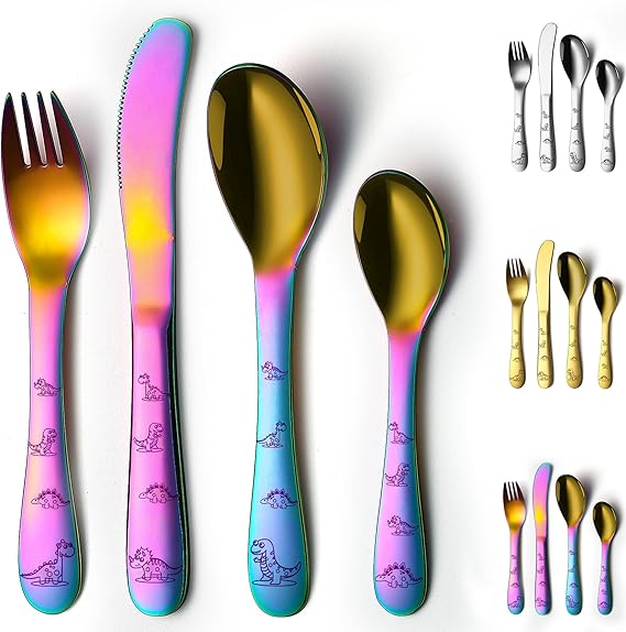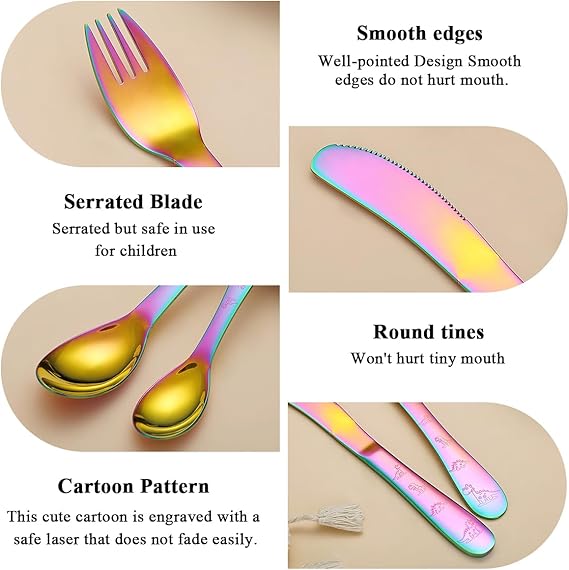 Evanda カトラリーセット 子供用 レインボー 4点セット ナイフ フォーク スプーン 18-0ステンレス鋼 チタンメッキ 食洗器対応 幼児 食器セット キャンプ キッチン用品