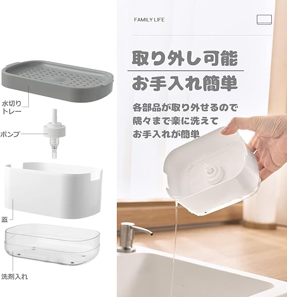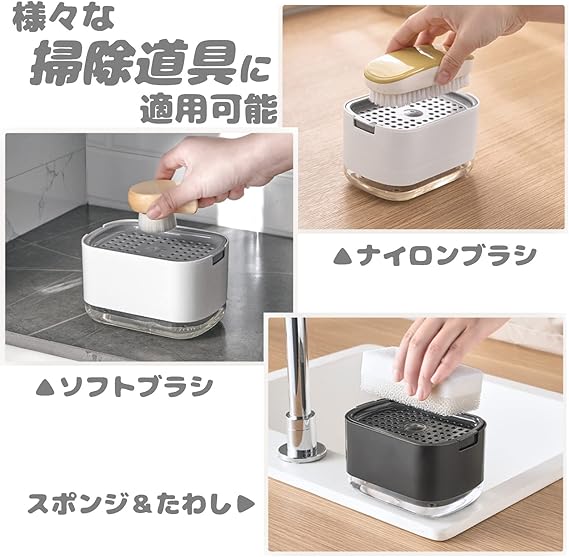 Hoffnugshween スポンジ置き 食器洗剤ディスペンサー ワンプッシュで洗剤がでる 片手操作 水切り機能 省スペース 家事時短 滑り止め 取り1