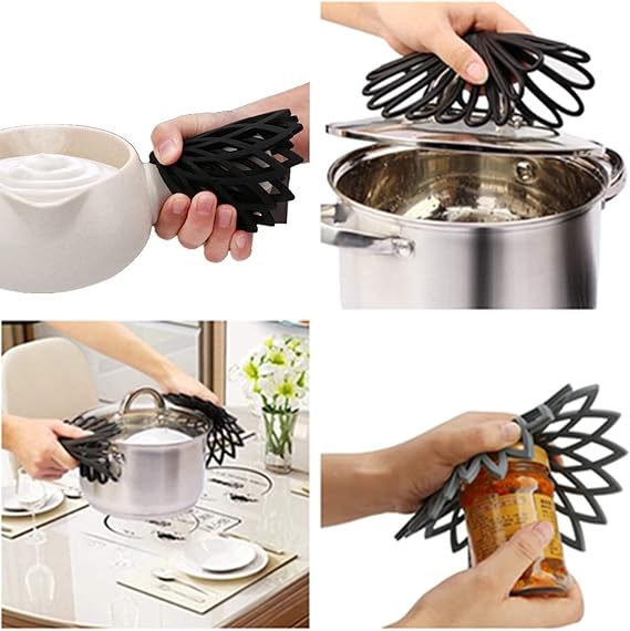 【大きいサイズ】20 x 0.6cmで多くの食器や調理器具に使用できます。3種類の花型モデルのデザインがキッチンやその他のお部屋を飾ります。このポットスタンドは滑り止め付きで