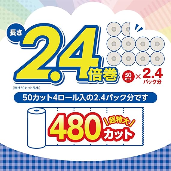 超特大長持ちロール!長さ2.4倍巻 ※当社50カット品比