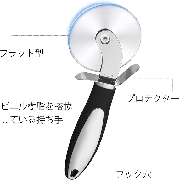 【幅広い使い方】このピザカッターは、キッチンで幅広く活用することができます。本製品を使えば、綺麗にピザをカットできるだけでなく、生地、パイ、ワッフル、クレープ、生地ビスケットなどにも適しています。まさに料理の時間を楽しむ素敵なパートナーです。
