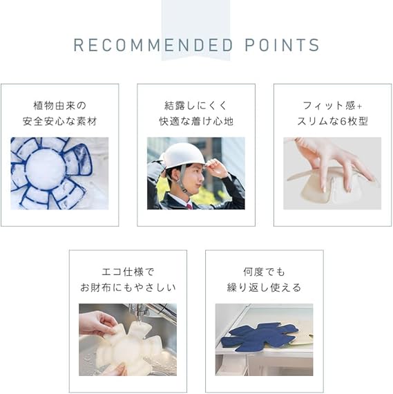 熱中症予防のために帽子をかぶることは大切ですが、帽子の中に熱がこもってしまいます。そこで、冷えすぎず適切な温度で頭部を冷やすことができる「帽子用PCM冷感シート」がおすすめです。皮膚の表面温度を冷やしすぎず、心地よい温度を持続させます。